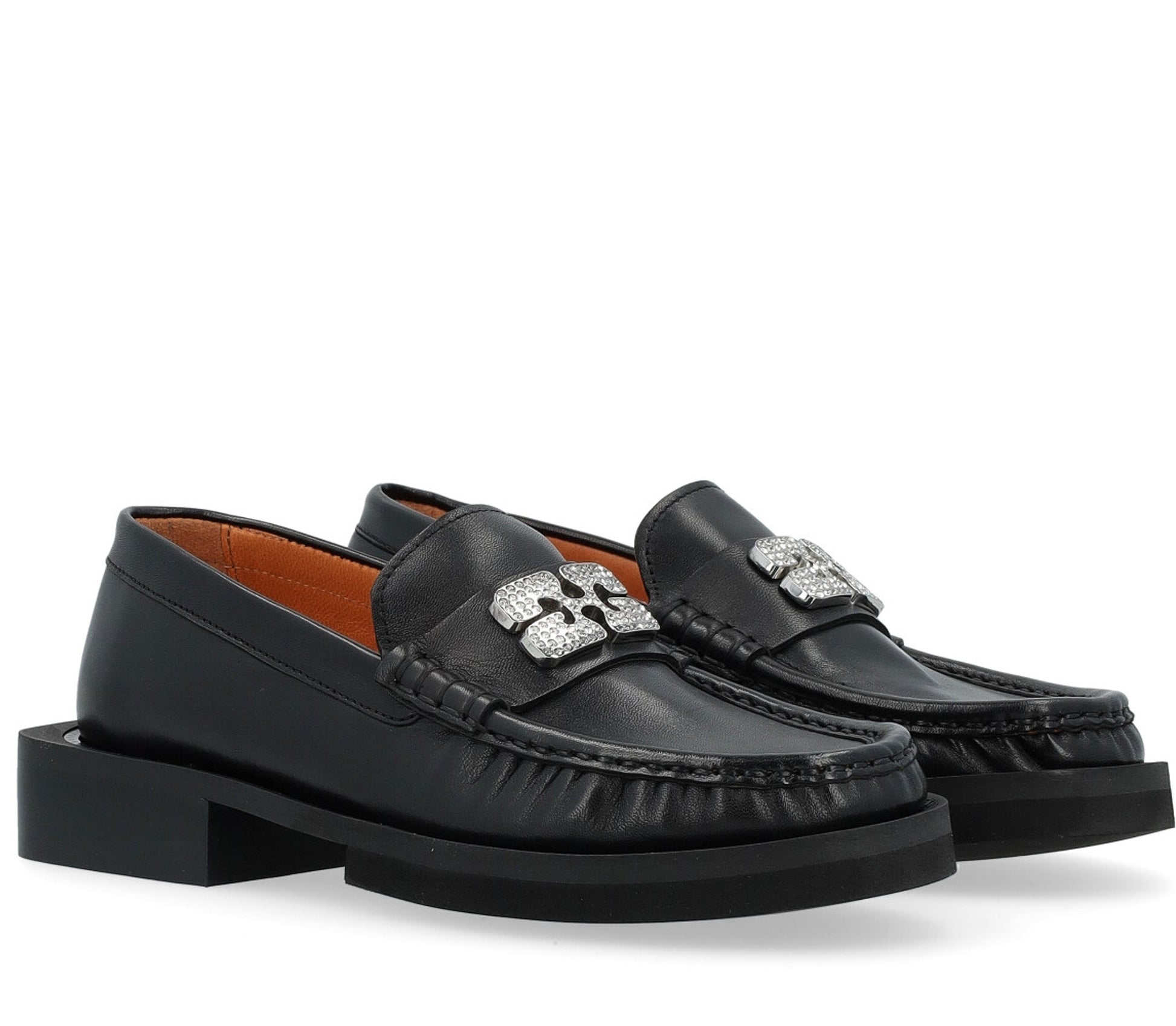 Ganni loafers in leather with metal monogram